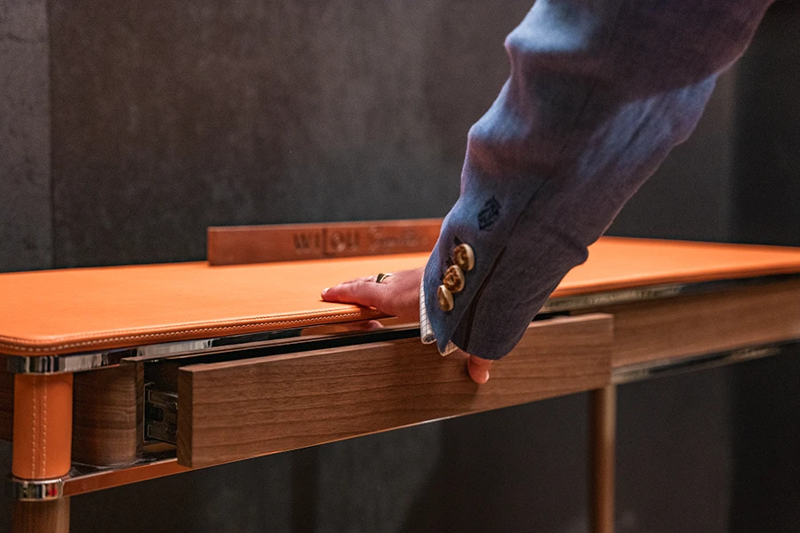 La nouvelle collection se distingue par la façon dont les trois matériaux — le bois, le cuir et le laiton — se conjuguent avec élégance et subtilité.