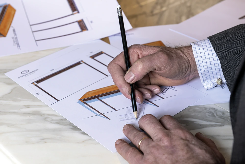 C’est en effet sur le stand de William Concept lors d’une prestigieuse foire de meubles que Louis de Limburg Stirum - designer industriel, rencontre Elena Sandulache - William Concept, le designer expliquera qu’il a tout de suite été attiré par la qualité et la maîtrise irréprochable du savoir-faire des meubles exposés. La collaboration fut spontanée et évidente, et très vite les premiers croquis et idées de concepts de meubles furent présentés par le designer.